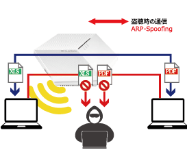 盗聴ツールが簡単に入手できてしまう昨今、データの盗み見や盗み取り被害が急増中です。ZEROAPXは通信傍受の代表的な攻撃であるARP-Spoofing攻撃を検知・遮断することができます。ネットワーク上にある個人情報、機密情報の盗み取り行為などを防ぎ企業情報を守ることに加えて、内部不正の制にも効果を発揮します。