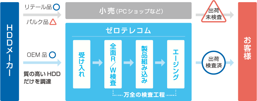 ZDシリーズは質の高いHDDだけを調達し、万全の検査工程で施された質の高いHDDを搭載してお客様にお届けします。