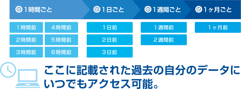 自動でファイルサーバーデータ領域内部にバックアップを実施しており、誤ってファイルを消去したり上書きしてしまっても、過去のデータへアクセスできます(スナップショット)。